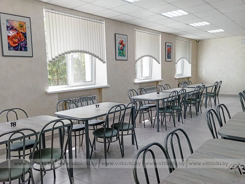 Большим плюсом стало сотрудничество с ВГУ имени П. М. Машерова, благодаря чему обеденный зал и холл выглядят стильно, креативно и современно. В обоих помещениях расположилась постоянно действующая выставка творческих работ студентов худграфа.