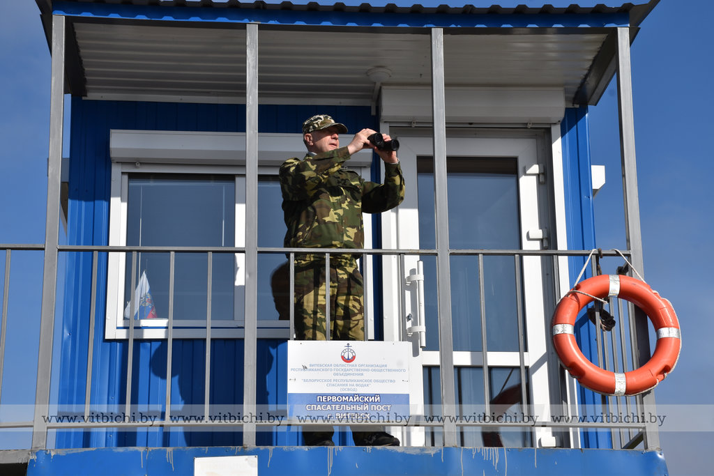 Интересно, что здесь находится единственный в районе пляж, один из немногих в областном центре. Соответственно создана вся необходимая инфраструктура. В частности, здесь есть пост ОСВОДА. Сегодня там дежурит председатель Первомайской организации ОСВОД Игорь Корюков.
