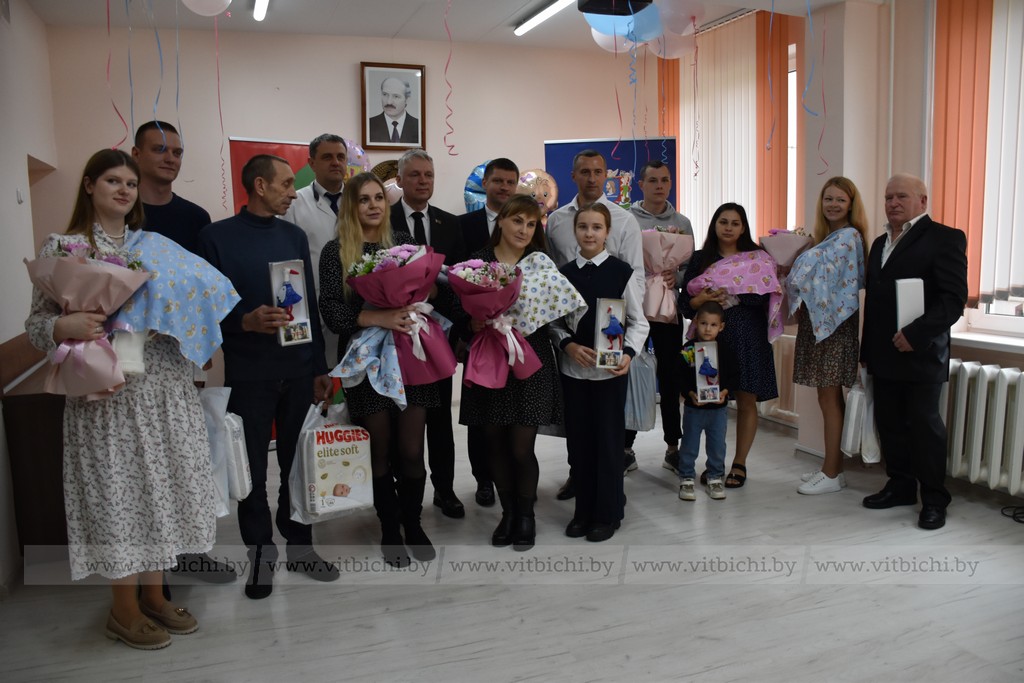 Поздравили новоиспеченных родителей и вручили им подарки глава администрации Первомайского района города Витебска Евгений Семёнычев, его заместитель Татьяна Мойсейчук, председатель Первомайской районной организации РОО «Белая Русь» Александр Каплевский и главный врач роддома Дмитрий Сержантов. Праздничное настроение семьям создавали творческие коллективы гимназии № 8.