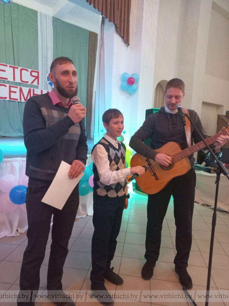 И, конечно, на празднике звучали добрые, трогающие душу стихи и песни о мамах и папах. Пели семьями – как Анна Романовна и Андрей Владимирович Артюхович, воспитывающие троих, тоже поющих детей. Пели отцы семейств, а, например, в творческом дуэте у Павла Климова – восемь детей, у Сергея Соболева – шестеро!