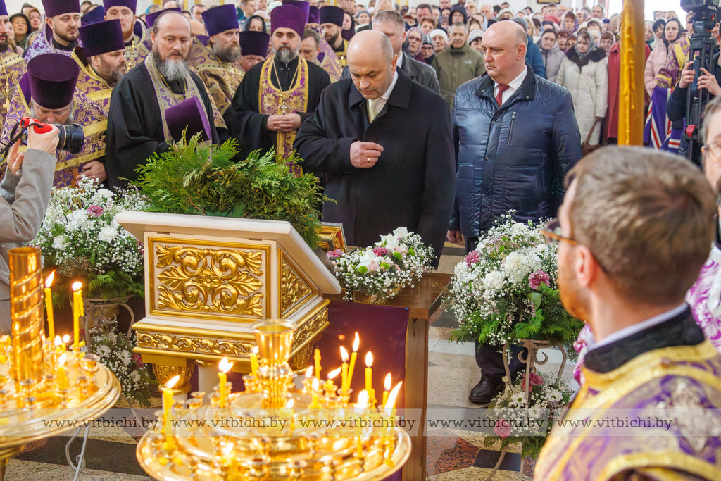 В торжественной встрече приняли участие архиепископ Витебский и Оршанский Димитрий, председатель Витебского облисполкома Александр Рогожник, председатель областного Совета депутатов Дмитрий Демидов, председатель Витебского горисполкома Алексей Героев, священнослужители, прихожане.