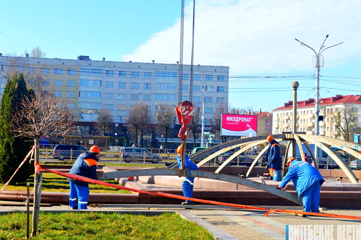 - Идет расконсервация фонтанов (раскрытие чаш), – сообщил «ВВ» начальник энергослужбы «Витебскводоканала» Андрей Щербенок. – Затем будем устанавливать снятое на зиму насосное оборудование. Помоем фонтаны. Это ежегодные стандартные работы.