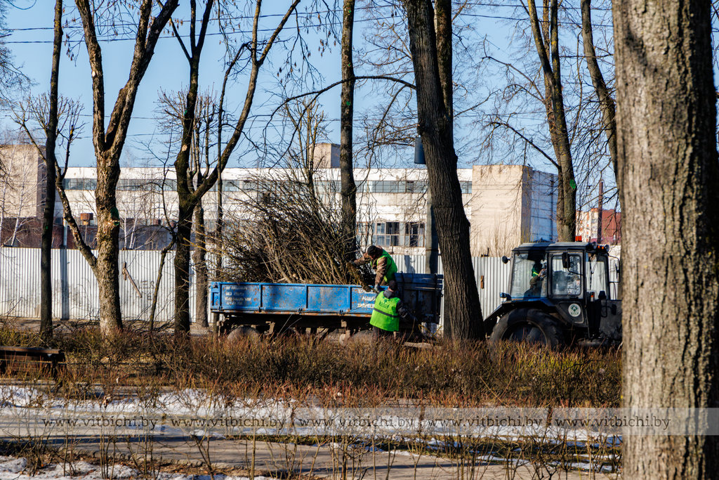 Работники ГП «Витебский Зеленстрой» продолжают санитарную и формовочную обрезку зеленых насаждений города на закрепленных за предприятием территориях. Наш фотокорреспондент запечатлел ход работ в сквере на улице Буденного.