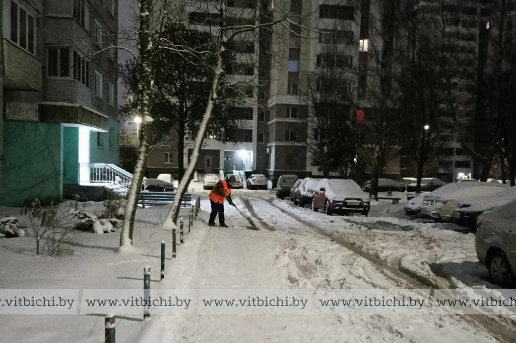 В Витебске продолжают работы по расчистке снега на придомовых территориях