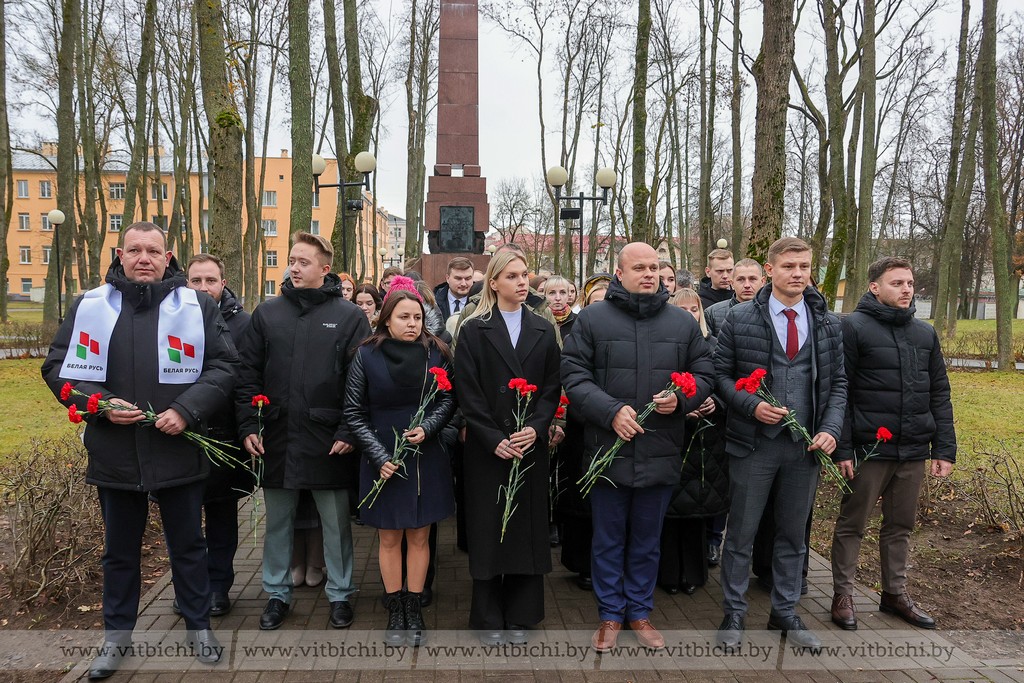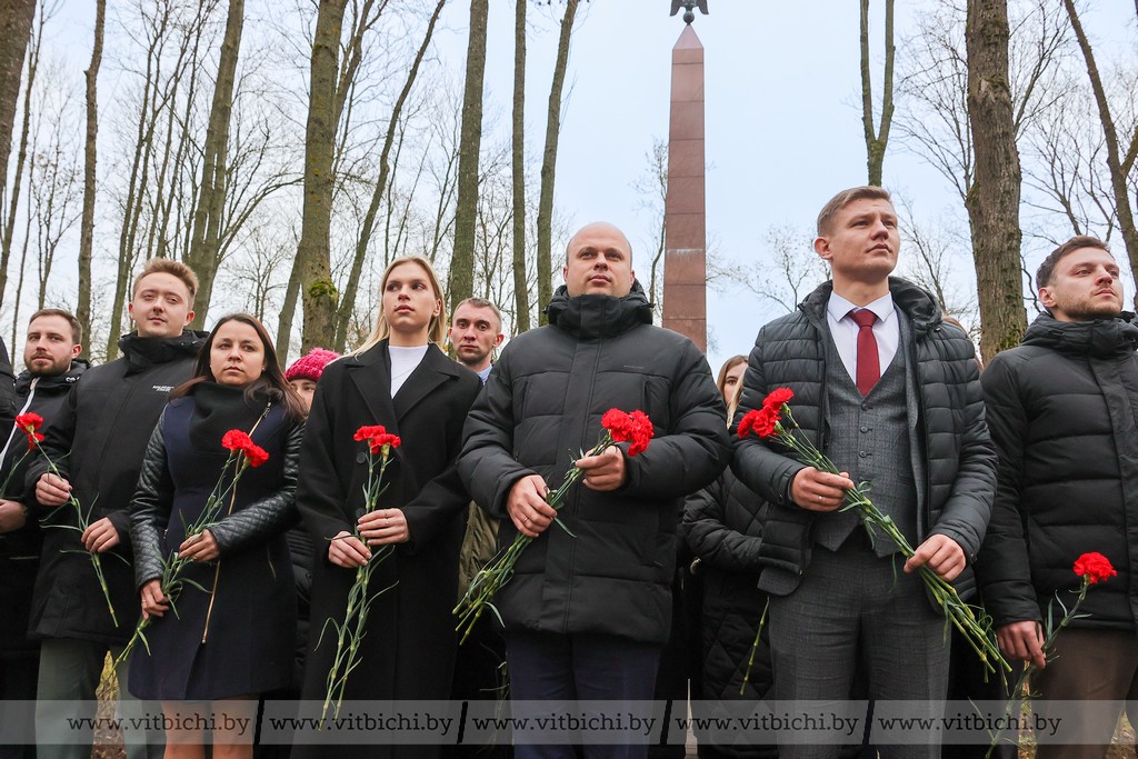 В рамках программы областного семинара члены Молодежного парламента и совета работающей молодежи приняли участие в митинге-реквием и возложили цветы к братским могилам на воинском кладбище на улице Советской.