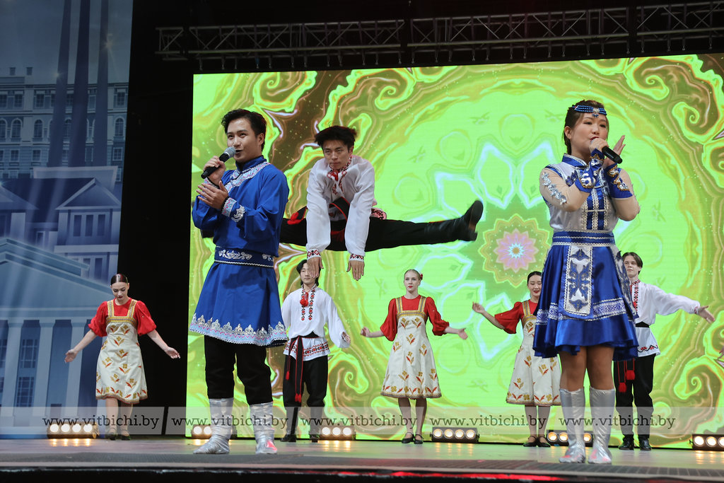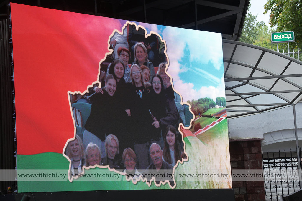 Атмосфера в Летнем амфитеатре просто невероятная! Концертные номера идут один за одним. Каждая мелодия проникнута любовью к своей земле, к Беларуси. В зале нет равнодушных лиц. Люди подпевают и громко аплодируют артистам.