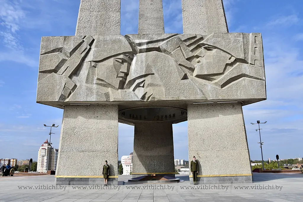 Молодые люди собрались возле мемориальной доски Герою Советского Союза Фёдору Блохину, которая установлена при входе на одноименный мост по улице Генерала Белобородова. Следуя экскурсионным маршрутом, группа поднялась по ступеням монументальной лестницы, ведущей от набережной Западной Двины к Вечному огню мемориального комплекса в честь воинов-освободителей, партизан и подпольщиков Витебщины. Гид предложил учащимся сосчитать количество этих ступеней. Интересный факт: их оказалось ровно 80. От площади Победы экскурсанты прошли в парк Победителей и к памятнику десантникам всех поколений.