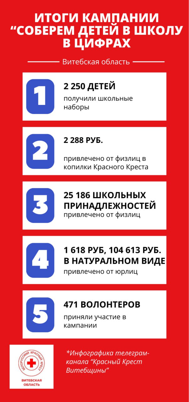 Успех акции стал возможен благодаря активному участию предприятий и учреждений города. Витебская городская организация Красного Креста выражает искреннюю благодарность всем, кто подключился к сбору помощи: