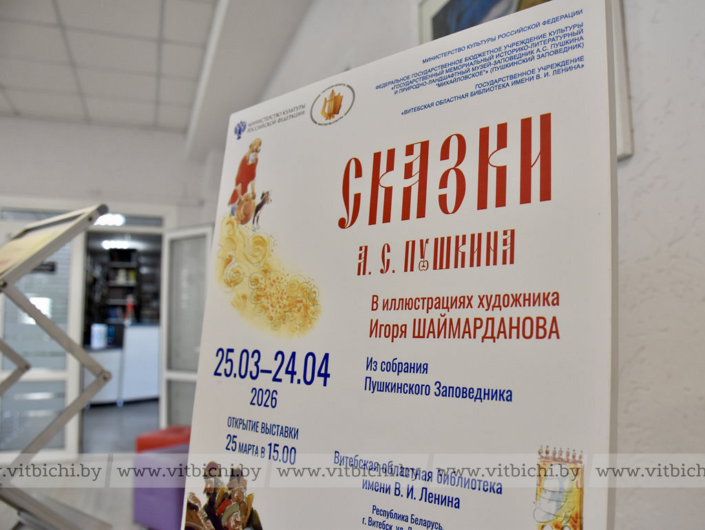 Выставка иллюстраций к сказкам Александра Сергеевича Пушкина российского театрального художника, иллюстратора Игоря Шаймарданова открылась в Витебской областной библиотеке.