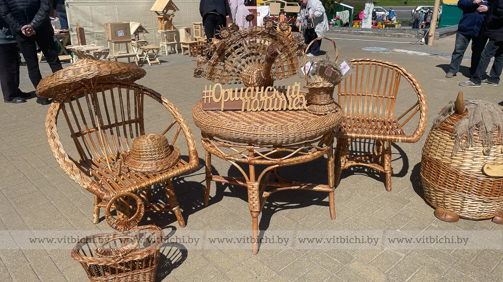 На стенде Оршанского политехнического колледжа — деревянные шкатулки ручной работы, плетеные изделия из лозы, постельное белье и даже одежда. Что по ценам? Плетеная корзинка из лозы – 30 рублей, постельное белье – от 72 рублей.