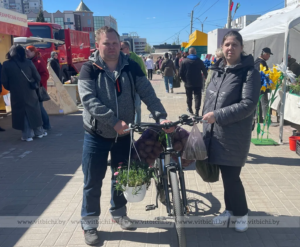 - По дороге на работу увидели сегодняшнюю ярмарку, и не смогли пройти мимо. Мы чаще всего приходим на ярмарки за свежими овощами и фруктами. Уже купили картофель, следующий в списке — лук. В списке покупок — цветы - поделились Наталья и Сергей.