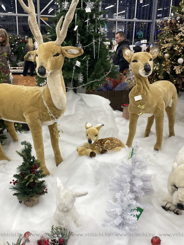 Особо стоит отметить гипермаркеты. Один из них в микрорайоне «Билево» не просто украсили по-новогоднему, а создали целое шоу. Кто только здесь ни приземлился! И олени, и белый медведь, и ёлки, и Санта-Клаус, и даже праздничная повозка. А самое удивительное, когда звучит музыка, фигуры оживают и плавно крутят головами. Вольно или невольно возникает ощущение зимней сказки. Не удивительно, что витебчане приходят сюда семьями и снимают видео, а дети со смехом машут фигурам, приветствуя их.