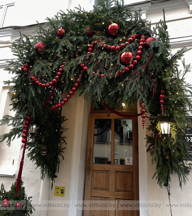 Заметьте: у каждого кафе или магазина своя идея оформления, свой акцент. Одни делают ставку на яркие символы, другие – на уютные детали, третьи создают целое шоу. У входа в одно из городских кафе, например, установлен символ года – Красная (Огненная) Лошадь, которая слегка покачивается из стороны в сторону, если к ней прикоснуться. По бокам – аккуратные ёлочки с гирляндами, над дверью арка из еловых веток, украшенная бусами из красных новогодних шаров. Дополняет композицию светящаяся гирлянда, которая сразу создает эффект праздника и поднимает настроение.