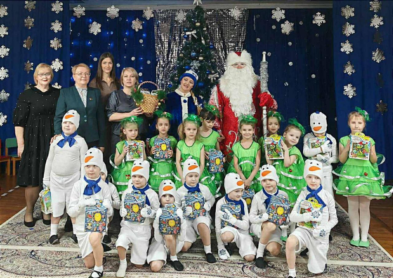 Гости поздравили всех с Новым годом, вручили воспитанникам детского сада сладкие подарки. Они отметили, что дети -- это будущее страны, и взрослые должны сделать всё, чтобы они росли счастливыми.