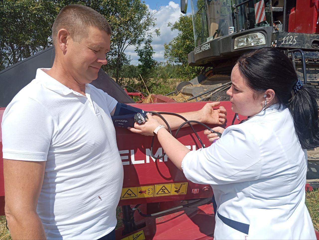 В Толочинской ЦРБ, например, организована выездная бригада из числа сотрудников Серковицкой амбулатории врача общей практики. Они регулярно выезжают в поля, чтобы провести мониторинг здоровья механизаторов и комбайнеров, дать рекомендации, особенно по соблюдению питьевого режима. Такую же работу ведут их коллеги из многих других центральных районных больниц, уделяя особое внимание профилактике сердечно-сосудистых проблем, для чего измеряют артериальное давление, а также уровень сахара и кислорода в крови.
