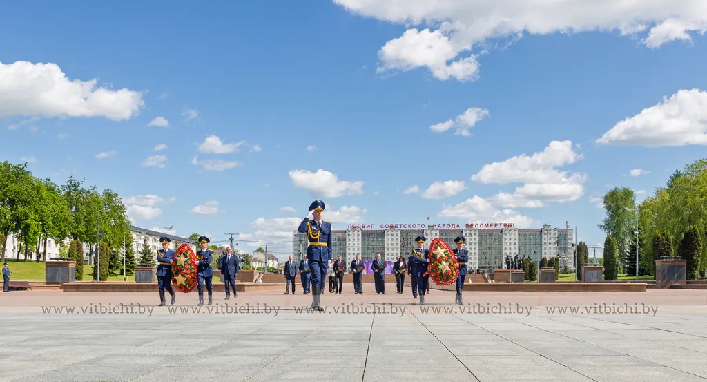 Рабочая встреча в Витебске началась с церемонии возложения венков и цветов к монументу партизанам, подпольщикам и советским воинам на площади Победы. Вместе с руководителями таможенных служб в ней приняли участие председатель Витебского облисполкома Александр Субботин и председатель Витебского горисполкома Алексей Героев.