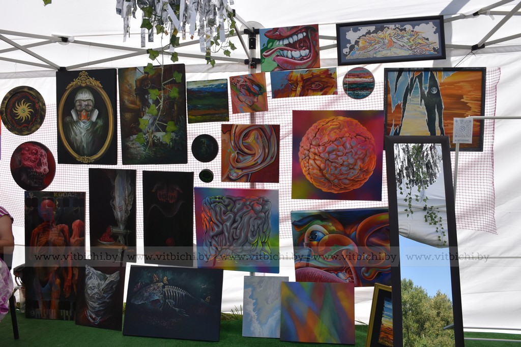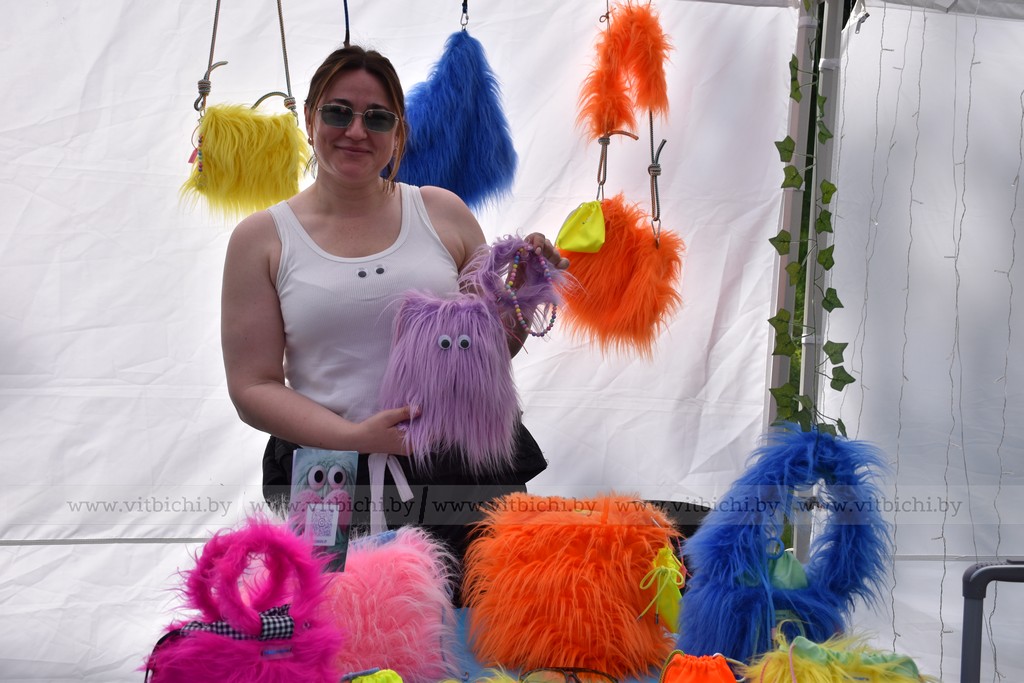 С самого утра главной точкой притяжения, наравне со сценами, стала маркет-зона. Она превратилась в настоящий город мастеров, где дизайнеры, художники и ремесленники представляли свои лучшие работы. Среди обилия авторской одежды, украшений, картин и товаров для дома особенно выделялись работы минской мастерицы Евгении Фурс. Ее яркие, невероятно мягкие и тактильные сумки из эко-меха стали настоящим магнитом для гостей фестиваля.