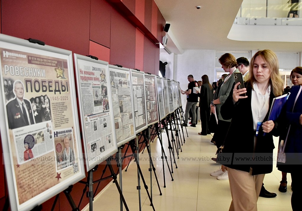 Второй день V Форума медийного сообщества проходит в Гомеле. В фойе работает выставка проектов региональных газет, посвященных 80-летию Победы. Витебские издания также представили свои лучшие материалы, посвященные теме войны.