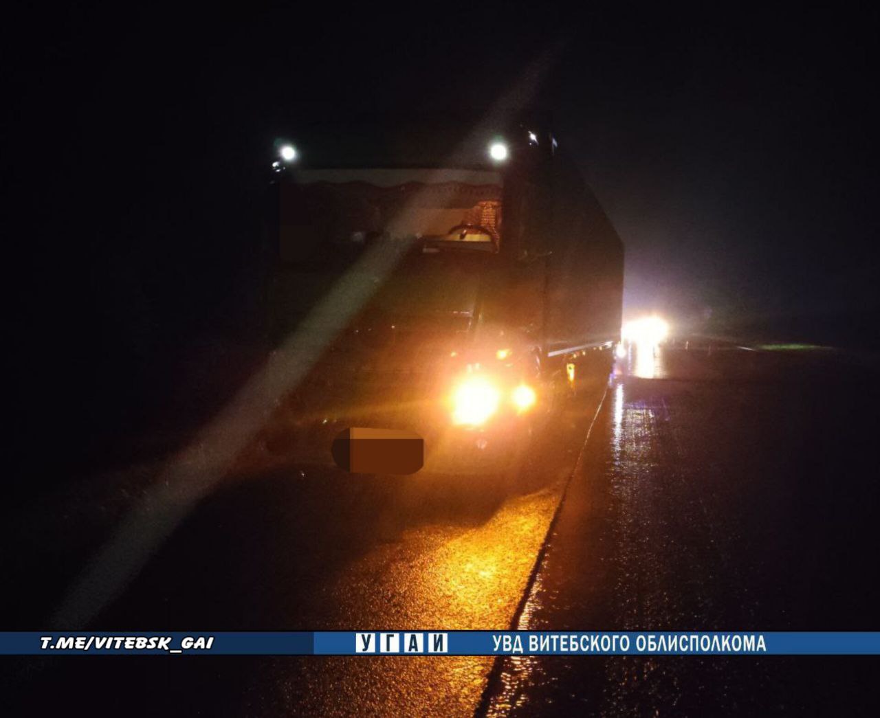 Ночью на 511-м километре автодороги М-1 "Брест- Минск-граница Российской Федерации" 31-летний водитель, управляя седельным тягачом Mercedes с полуприцепом, вблизи д. Прелесье совершил наезд на находящегося на проезжей части дороги в правой полосе движения пешехода.