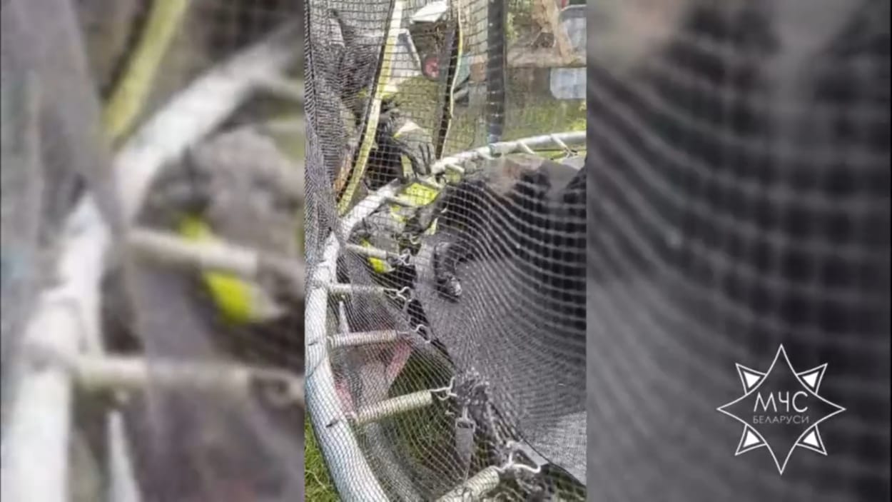 Инцидент произошел в Витебске. О случившемся на линию «112» сообщили хозяева пса. Животное терпеливо ждало, пока спасатели освобождали его лапу. Любитель прыжков на батуте не пострадал.